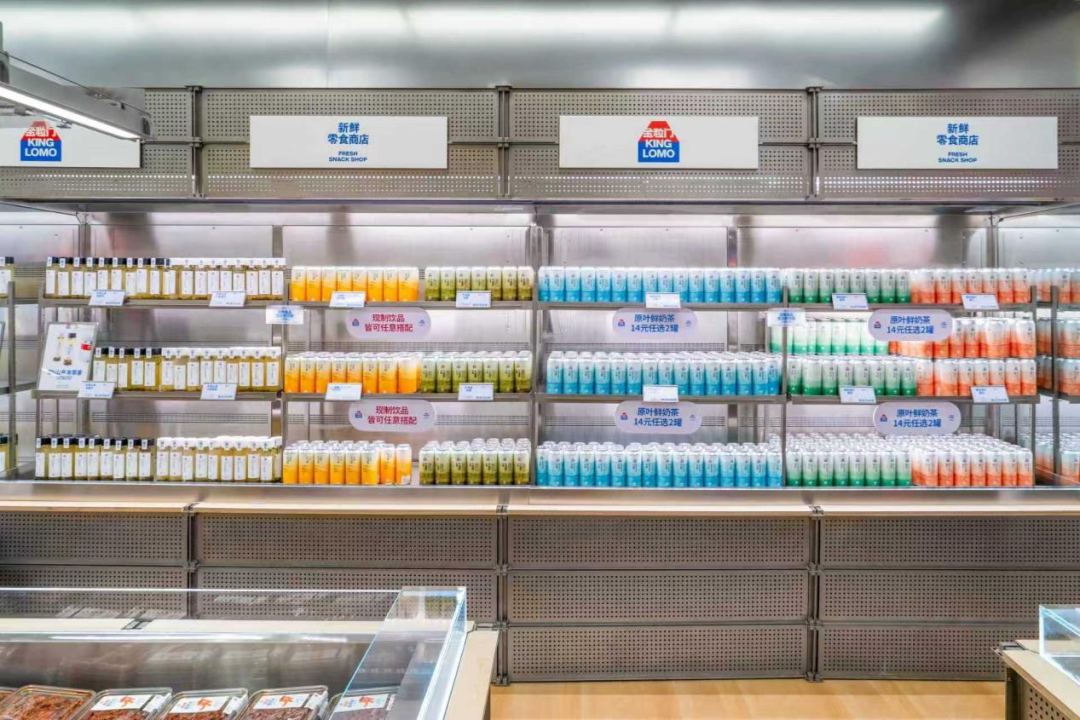 踏入金粒门的门店,仿佛置身于一场新鲜零食的盛宴:现制麻辣、鲜烤猪肉脯、魔味鲜卤、新派中点、全熟果干、原液鲜果茶等多种美食全方位满足消费者的购物需求。门店以通透的开放式布局打破传统零食店的逼仄感——工业风混搭木质元素的装修与暖光灯带勾勒出温馨氛围,试吃区陈列着美味的商品,消费者可随手取用、即时反馈,让门店成为一个可逛、可体验、可分享的社交空间。