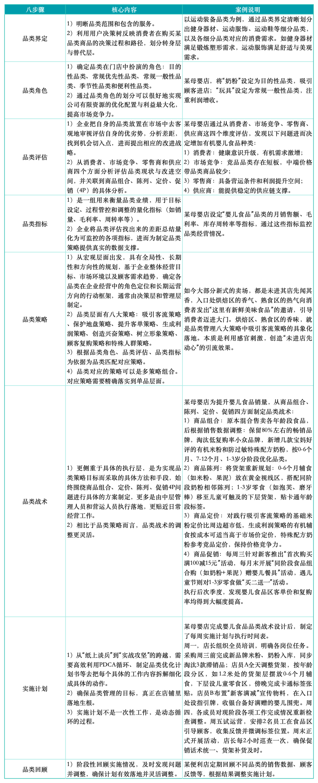 表5 品类业务计划八步骤及案例说明