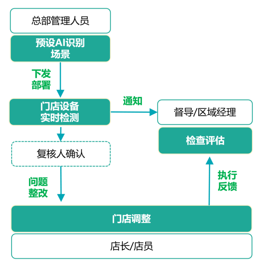 部分连锁企业管理者将人工巡检作为总部和门店零距离交流的一种方式,比如2小时的门店拜访,30分钟用于巡检,剩下90分钟用于关注门店经营情况并给予指导意见。那针对门店各项规范的检查,需要视频远程巡检及更高效的AI巡检来补充完成。